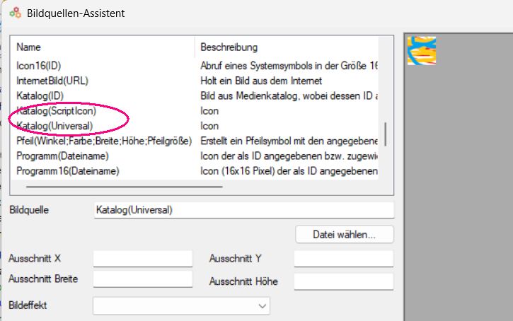 Im Bildquellenassistent siehst Du diese dann wie hier beispielhaft unter Katalog(ScriptIcon) oder Katalog(Universal).